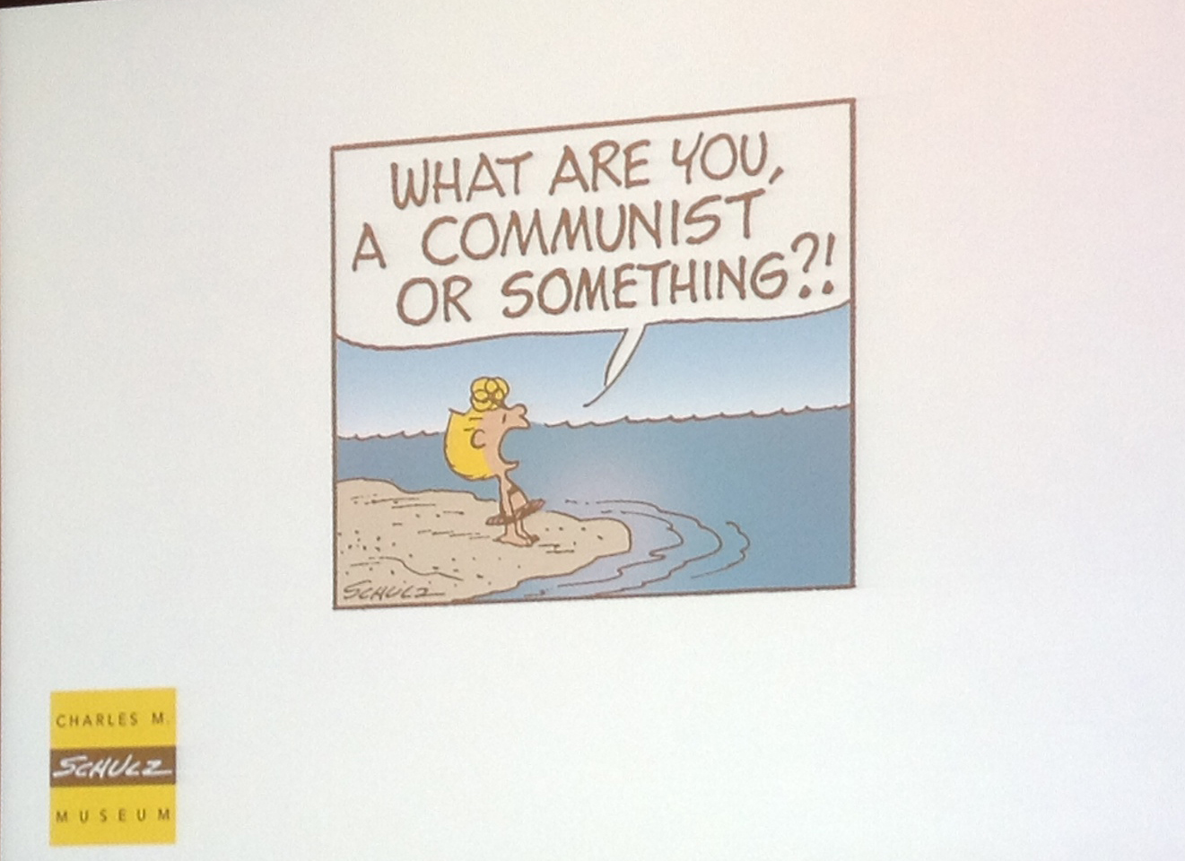 Then, Corry Kanzenberg’s presentation, in which she shows such strips as this one, in which Linus mistakes snowflakes for nuclear fallout.