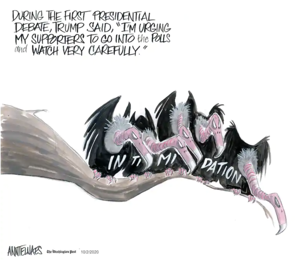 Here is the worst-cast scenario. The combination of voter suppression, voter intimidation, sabotage of the US Postal Service, and foreign interference in voter tallies tips the official count to Trump. He and the Republicans claim their stolen “victory” as legitimate. Should that occur, we will all need to take to the streets and protest until the Autocrat steps down. And we will do so knowing that he will send his unmarked secret police to brutalize us.